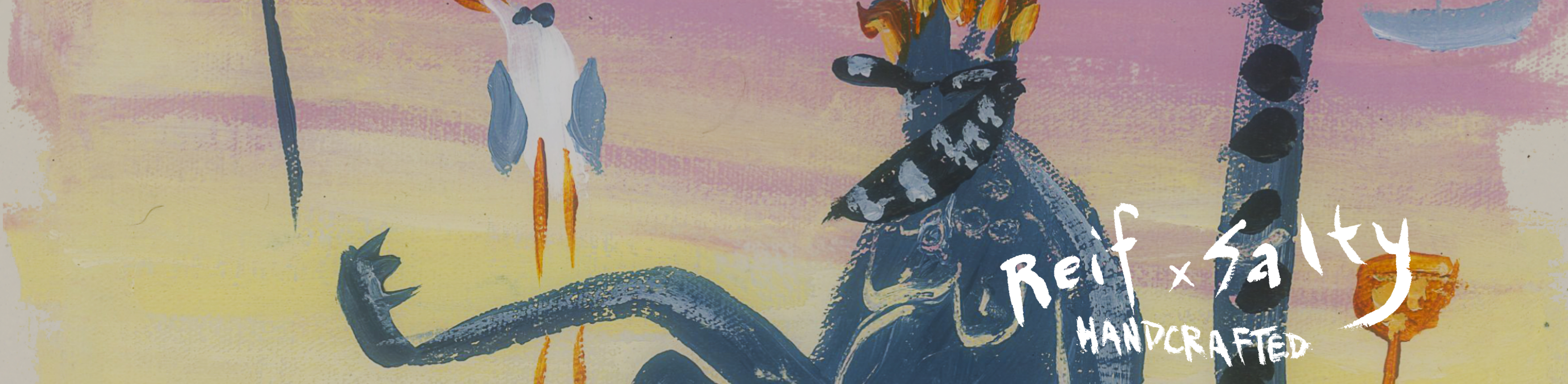On top of the brand new collection packaging, every piece comes packed with a story specific to the piece, the originals all hand-painted by Reif himself. Not only that, but while stocks last, you'll get an A4 art piece by Reif on a high quality sheet of cotton canvas.