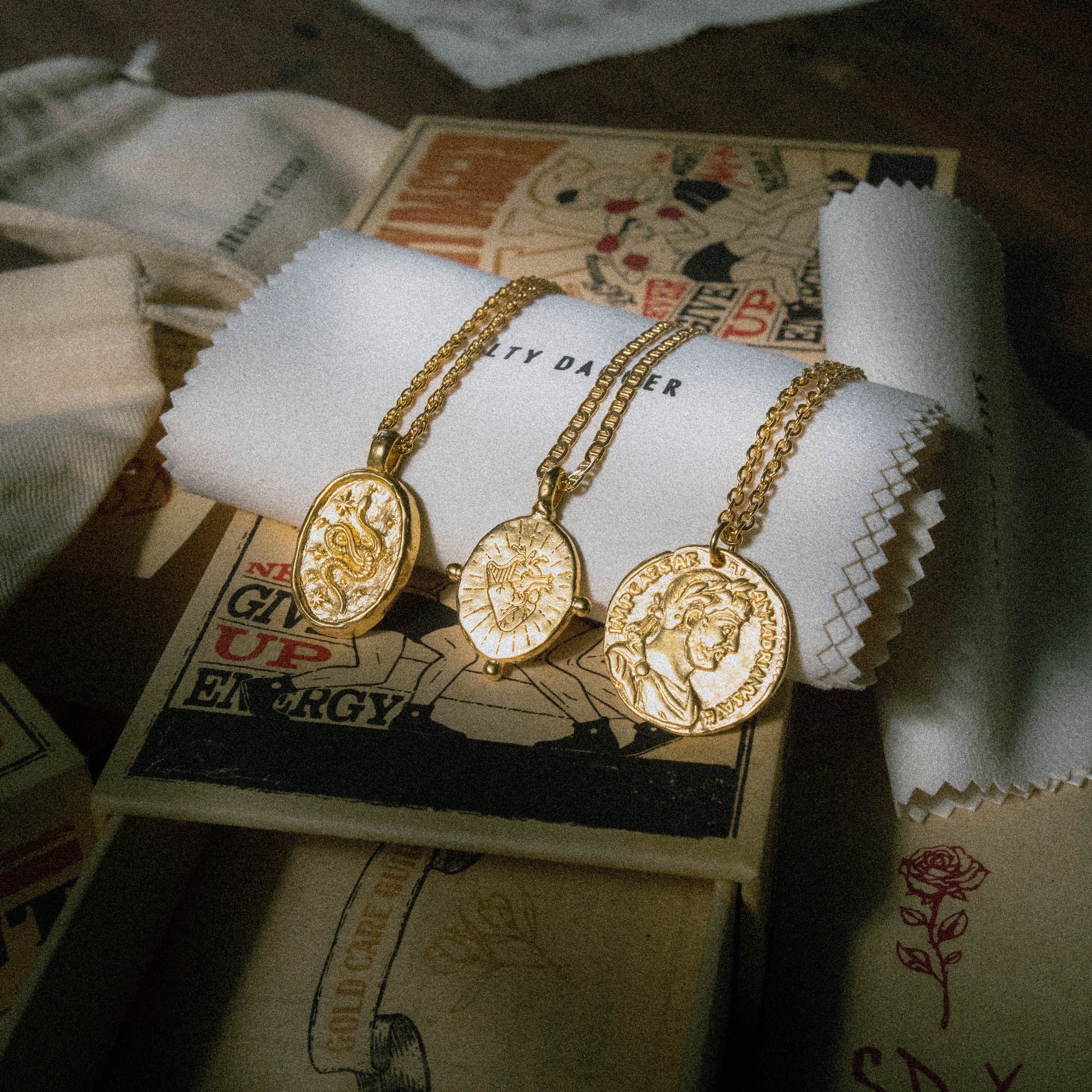 Our oldschool matchbox-style packaging is made from 100% recycled card and printed with soy-based inks. It also includes our organic cotton bag, polishing cloth, and a little more.